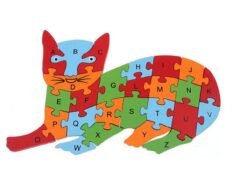 Cat Shaped Wooden Educational Alphabet & Numbers Jigsaw Puzzle